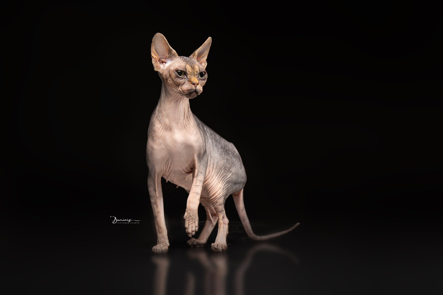 Le Sphynx étant dépourvue de poils, sa peau est pigmentée de la même couleur que ses poils auraient dû avoir.