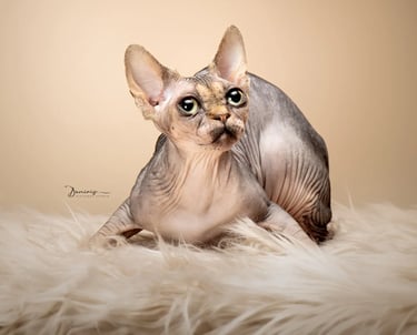 Le Sphynx, aussi connu sous le nom de chat nu, est le parfait animal de compagnie! Ce chat à l'allure atypique, est une boule d'amour! Très proche de ses propriétaires, il appréciera se glisser dans votre lit pour vous tenir compagnie. Souvent qualifié de "chat-chien" le Sphynx est de nature curieuse, il guettera vos faits et gestes et vous suivra partout dans la maison. Ce chat est sociable avec les autres animaux de compagnie notamment les chiens. Le Sphynx est facile à vivre, doux, calme, peu angoissé, et sans agressivité. Il convient parfaitement à un environnement familial, son tempérament calme convient tout à fait aux enfants tant que ces derniers savent respecter ses moments de tranquillité. Le Sphynx est à la fois joueur et très paisible, c'est pourquoi il est apprécié pour sa capacité d'adaptation lors des déménagements ou départs en vacance. Que vous soyez en maison ou en appartement il s'adaptera à son environnement. Le Sphynx est plutôt un chat d'interieur que d'exterieur. Il préfère le confort et la chaleur d'un plaid, ou la chaleur du soleil derière une vitre.